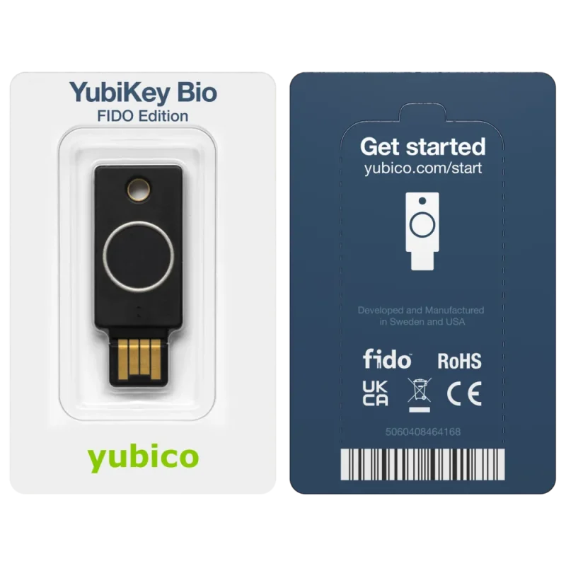 - Secure and convenient: Passwordless MFA login with the YubiKey Bio authenticator and biometric information using a fingerprint, with a PIN as a fallback. Simply plug in via USB-A and use your fingerprint to authenticate.